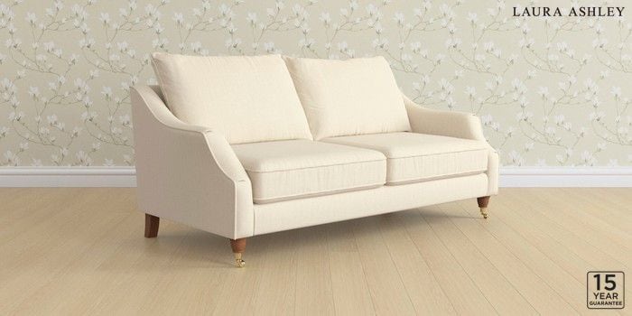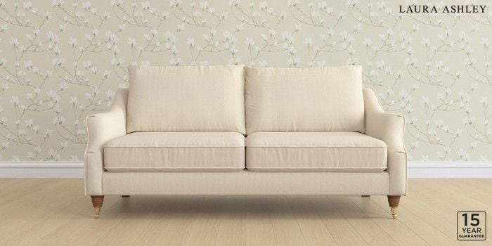 6.12.1 Buy Beverley by Laura Ashley 3 Seater Sofa Wooton Natural Low Brass Castor - Teak from the Laura Ashley online shop Click here to use our website with more accessibility support, for example screen readers