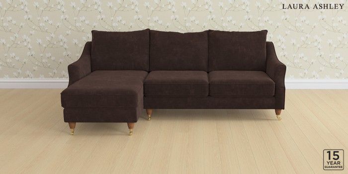 6.12.1 Buy Beverley by Laura Ashley Medium Sofa Chaise - Left Hand Alwyn Velvet Chocolate Brown Low Brass Castor - Teak from the Laura Ashley online shop Click here to use our website with more accessibility support, for example screen readers