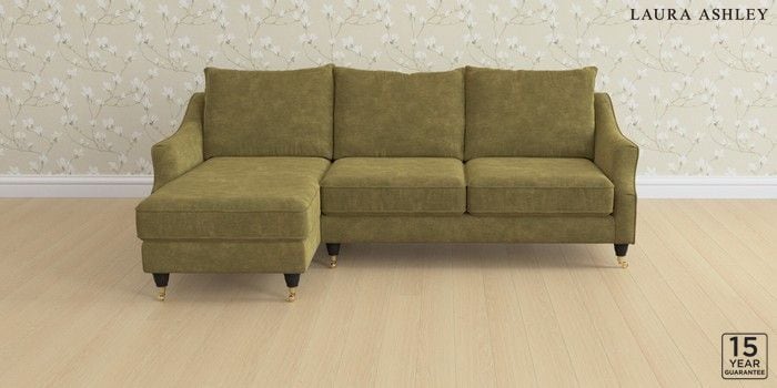 6.12.1 Buy Beverley by Laura Ashley Medium Sofa Chaise - Left Hand Alwyn Velvet Olive Green Low Brass Castor - Black from the Laura Ashley online shop Click here to use our website with more accessibility support, for example screen readers