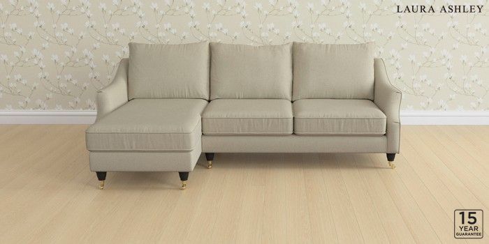 6.12.13 Buy Beverley by Laura Ashley Medium Sofa Chaise - Left Hand Anneliese Natural Low Brass Castor - Black from the Laura Ashley online shop Click here to use our website with more accessibility support, for example screen readers
