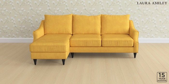 6.12.1 Buy Beverley by Laura Ashley Medium Sofa Chaise - Left Hand Bainton Ochre Yellow Low Turned - Black from the Laura Ashley online shop Click here to use our website with more accessibility support, for example screen readers