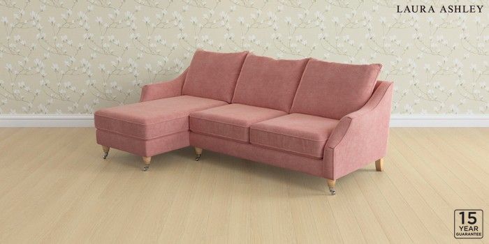 6.12.1 Buy Beverley by Laura Ashley Medium Sofa Chaise - Left Hand Bainton Old Rose Pink Low Chrome Castor - Light Oak from the Laura Ashley online shop Click here to use our website with more accessibility support, for example screen readers
