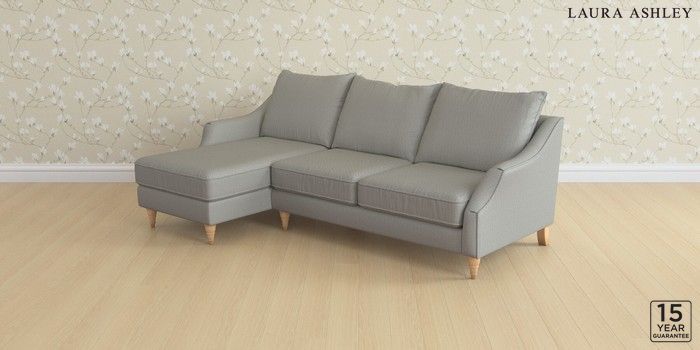 6.12.1 Buy Beverley by Laura Ashley Medium Sofa Chaise - Left Hand Edwin Herringbone Pale Steel Grey Low Turned - Light Oak from the Laura Ashley online shop Click here to use our website with more accessibility support, for example screen readers