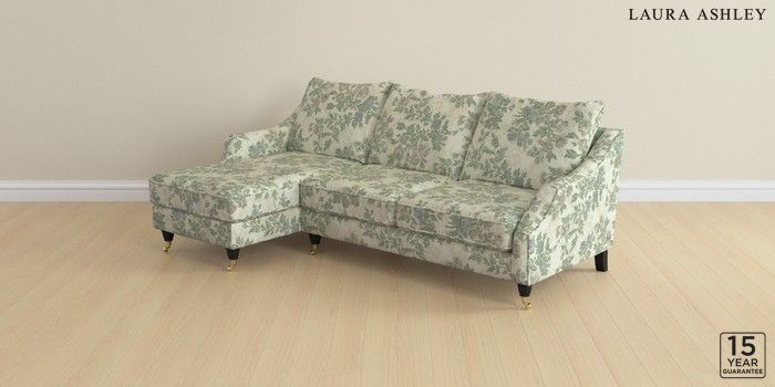 6.12.1 Buy Beverley by Laura Ashley Medium Sofa Chaise - Left Hand Ellerby Seaspray Blue Low Brass Castor - Black from the Laura Ashley online shop Click here to use our website with more accessibility support, for example screen readers