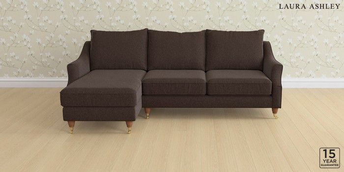 6.12.13 Buy Beverley by Laura Ashley Medium Sofa Chaise - Left Hand Harley Chestnut Brown Low Brass Castor - Teak from the Laura Ashley online shop Click here to use our website with more accessibility support, for example screen readers