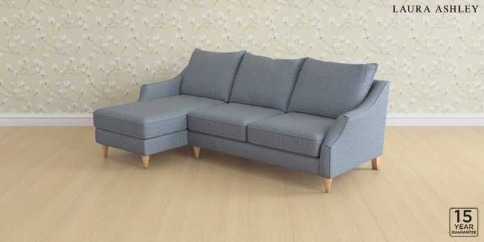 6.12.13 Buy Beverley by Laura Ashley Medium Sofa Chaise - Left Hand Harley Seaspray Blue Low Turned - Light Oak from the Laura Ashley online shop Click here to use our website with more accessibility support, for example screen readers
