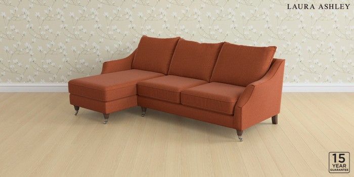 6.12.13 Buy Beverley by Laura Ashley Medium Sofa Chaise - Left Hand Harley Terracotta Orange Low Chrome Castor - Chestnut from the Laura Ashley online shop Click here to use our website with more accessibility support, for example screen readers