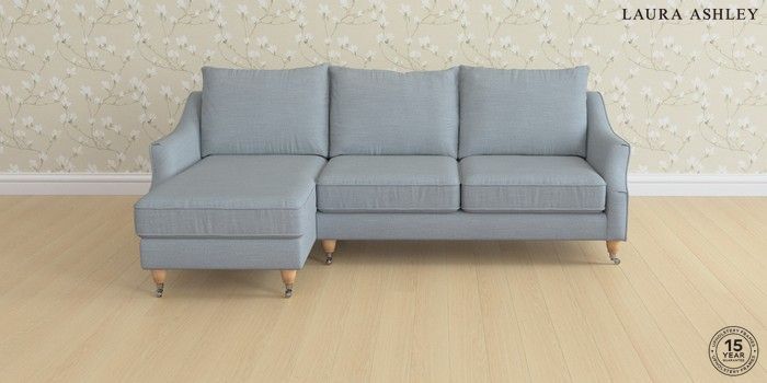 6.12.1 Buy Beverley by Laura Ashley Medium Sofa Chaise - Left Hand Kinsham Seaspray Blue Low Chrome Castor - Light Oak from the Laura Ashley online shop Click here to use our website with more accessibility support, for example screen readers