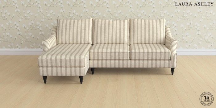 6.12.1 Buy Beverley by Laura Ashley Medium Sofa Chaise - Left Hand Kinsham Stripe Natural Low Turned - Black from the Laura Ashley online shop Click here to use our website with more accessibility support, for example screen readers