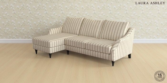 7.2.10 Buy Beverley by Laura Ashley Medium Sofa Chaise - Left Hand Kinsham Stripe Natural Low Turned - Black from the Laura Ashley online shop Click here to use our website with more accessibility support, for example screen readers