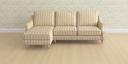 7.0.3 Buy Beverley by Laura Ashley Medium Sofa Chaise - Left Hand Kinsham Stripe Ochre Yellow Low Brass Castor - Light Oak from the Laura Ashley online shop Click here to use our website with more accessibility support, for example screen readers