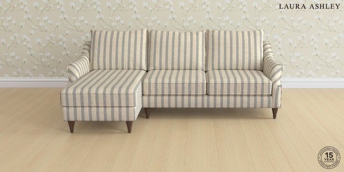 6.12.1 Buy Beverley by Laura Ashley Medium Sofa Chaise - Left Hand Kinsham Stripe Seaspray Blue Low Turned - Chestnut from the Laura Ashley online shop Click here to use our website with more accessibility support, for example screen readers