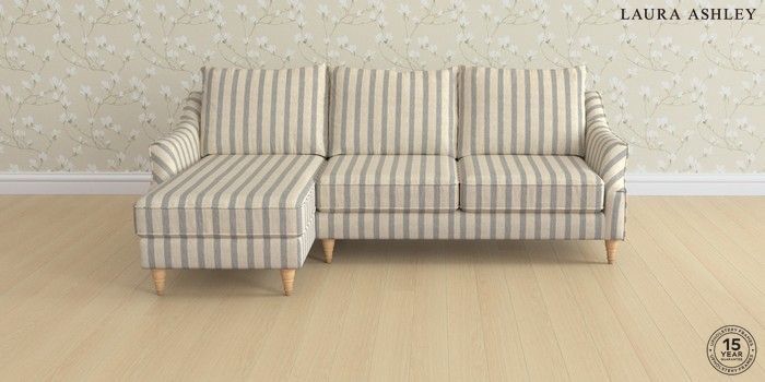 6.12.1 Buy Beverley by Laura Ashley Medium Sofa Chaise - Left Hand Kinsham Stripe Seaspray Blue Low Turned - Light Oak from the Laura Ashley online shop Click here to use our website with more accessibility support, for example screen readers