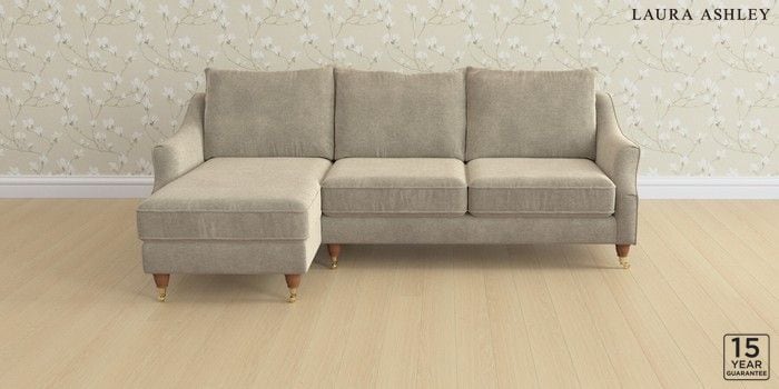 6.12.1 Buy Beverley by Laura Ashley Medium Sofa Chaise - Left Hand Lundar Chenille Truffle Natural Low Brass Castor - Teak from the Laura Ashley online shop Click here to use our website with more accessibility support, for example screen readers