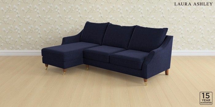 6.12.1 Buy Beverley by Laura Ashley Medium Sofa Chaise - Left Hand Nantmor Midnight Navy Low Brass Castor - Teak from the Laura Ashley online shop Click here to use our website with more accessibility support, for example screen readers