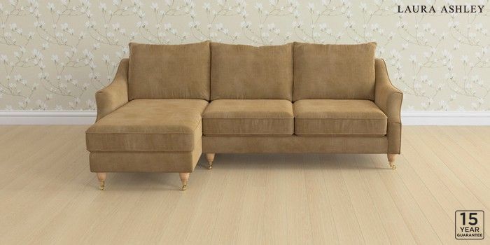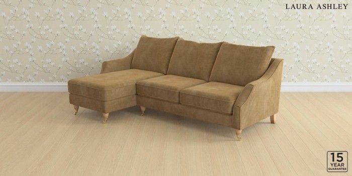 6.12.13 Buy Beverley by Laura Ashley Medium Sofa Chaise - Left Hand Orla Gold Natural Low Brass Castor - Light Oak from the Laura Ashley online shop Click here to use our website with more accessibility support, for example screen readers