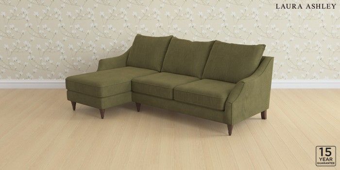 6.12.1 Buy Beverley by Laura Ashley Medium Sofa Chaise - Left Hand Sinclair Cord Ivy Green Low Turned - Chestnut from the Laura Ashley online shop Click here to use our website with more accessibility support, for example screen readers