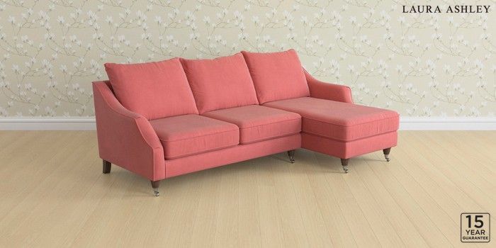 6.12.1 Buy Beverley by Laura Ashley Medium Sofa Chaise - Right Hand Ailsworth Old Rose Pink Low Chrome Castor - Chestnut from the Laura Ashley online shop Click here to use our website with more accessibility support, for example screen readers