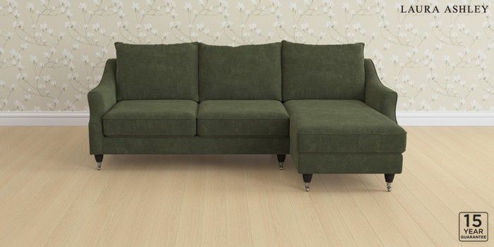6.12.1 Buy Beverley by Laura Ashley Medium Sofa Chaise - Right Hand Alwyn Velvet Ivy Green Low Chrome Castor - Black from the Laura Ashley online shop Click here to use our website with more accessibility support, for example screen readers