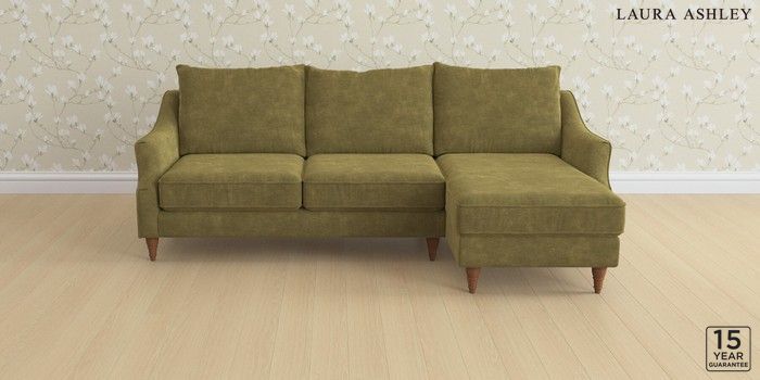 6.12.1 Buy Beverley by Laura Ashley Medium Sofa Chaise - Right Hand Alwyn Velvet Olive Green Low Turned - Teak from the Laura Ashley online shop Click here to use our website with more accessibility support, for example screen readers