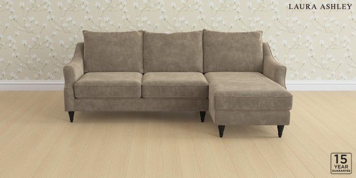 6.12.13 Buy Beverley by Laura Ashley Medium Sofa Chaise - Right Hand Alwyn Velvet Truffle Natural Low Turned - Black from the Laura Ashley online shop Click here to use our website with more accessibility support, for example screen readers