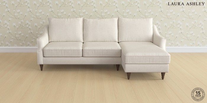7.2.6 Buy Beverley by Laura Ashley Medium Sofa Chaise - Right Hand Anneliese Oyster Natural Low Turned - Chestnut from the Laura Ashley online shop Click here to use our website with more accessibility support, for example screen readers