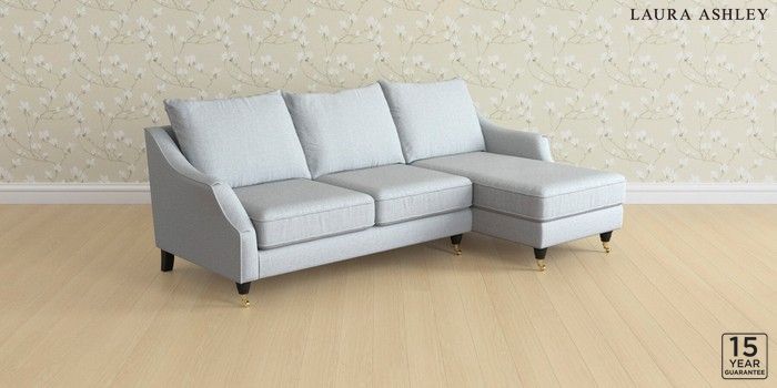 6.12.13 Buy Beverley by Laura Ashley Medium Sofa Chaise - Right Hand Anneliese Seaspray Blue Low Brass Castor - Black from the Laura Ashley online shop Click here to use our website with more accessibility support, for example screen readers