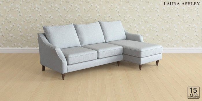 6.12.1 Buy Beverley by Laura Ashley Medium Sofa Chaise - Right Hand Anneliese Seaspray Blue Low Turned - Chestnut from the Laura Ashley online shop Click here to use our website with more accessibility support, for example screen readers