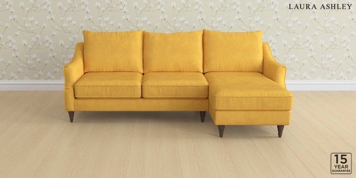 6.12.1 Buy Beverley by Laura Ashley Medium Sofa Chaise - Right Hand Bainton Ochre Yellow Low Turned - Chestnut from the Laura Ashley online shop Click here to use our website with more accessibility support, for example screen readers