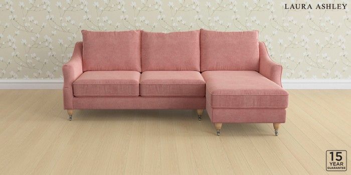 6.12.1 Buy Beverley by Laura Ashley Medium Sofa Chaise - Right Hand Bainton Old Rose Pink Low Chrome Castor - Light Oak from the Laura Ashley online shop Click here to use our website with more accessibility support, for example screen readers