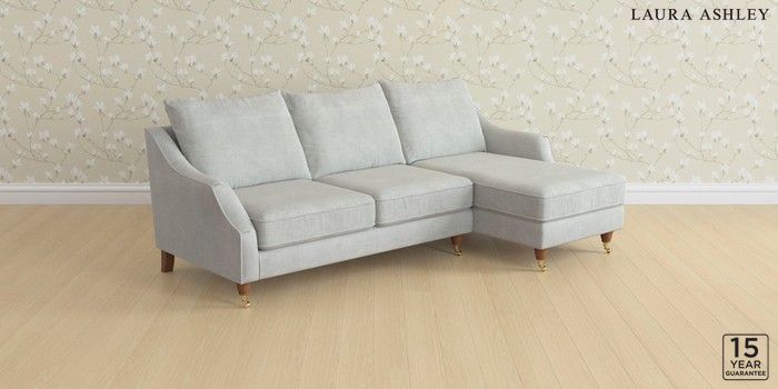 6.12.1 Buy Beverley by Laura Ashley Medium Sofa Chaise - Right Hand Edwin Chenille Silver Grey Low Brass Castor - Teak from the Laura Ashley online shop Click here to use our website with more accessibility support, for example screen readers