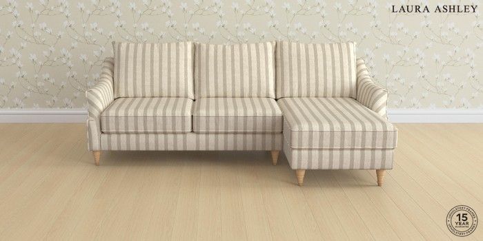 6.12.1 Buy Beverley by Laura Ashley Medium Sofa Chaise - Right Hand Kinsham Stripe Natural Low Turned - Light Oak from the Laura Ashley online shop Click here to use our website with more accessibility support, for example screen readers