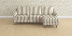 6.12.1 Buy Beverley by Laura Ashley Medium Sofa Chaise - Right Hand Kinsham Stripe Seaspray Blue Low Chrome Castor - Light Oak from the Laura Ashley online shop Click here to use our website with more accessibility support, for example screen readers