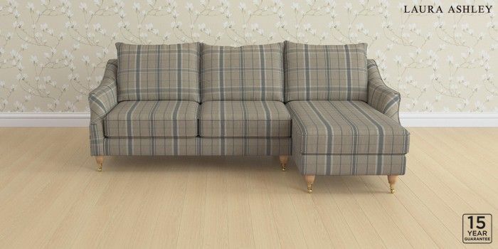 6.12.1 Buy Beverley by Laura Ashley Medium Sofa Chaise - Right Hand Longstowe Check French Grey Low Brass Castor - Light Oak from the Laura Ashley online shop Click here to use our website with more accessibility support, for example screen readers