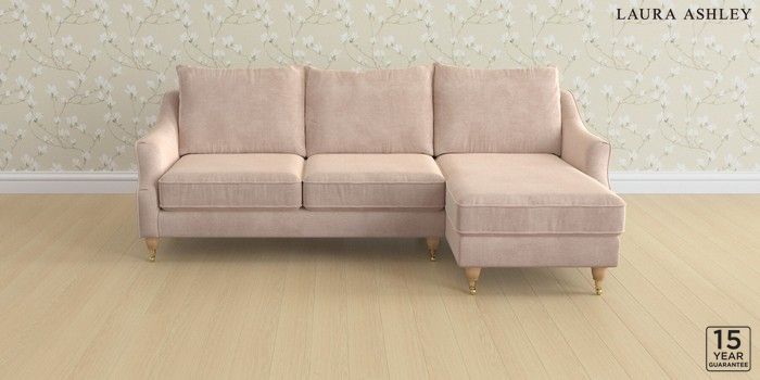 6.12.1 Buy Beverley by Laura Ashley Medium Sofa Chaise - Right Hand Orla Chalk Pink Low Brass Castor - Light Oak from the Laura Ashley online shop Click here to use our website with more accessibility support, for example screen readers