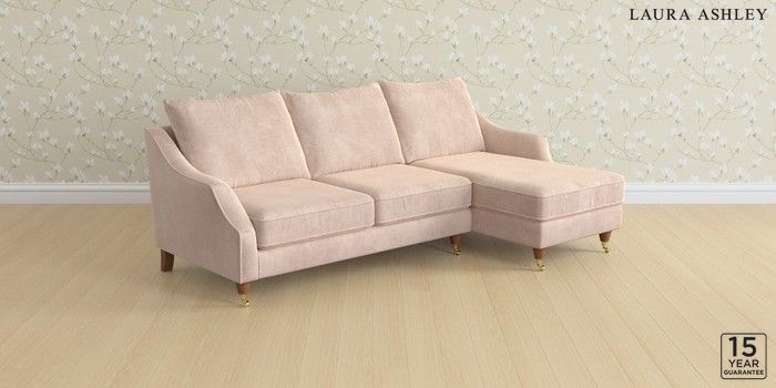 7.2.10 Buy Beverley by Laura Ashley Medium Sofa Chaise - Right Hand Orla Chalk Pink Low Brass Castor - Teak from the Laura Ashley online shop Click here to use our website with more accessibility support, for example screen readers