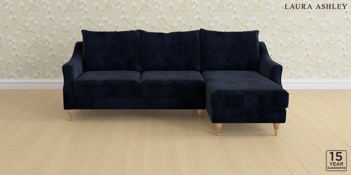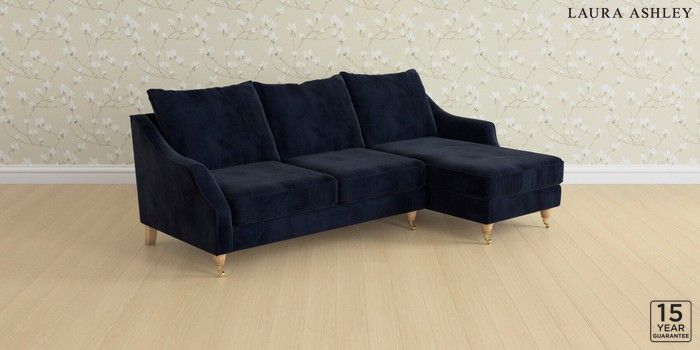 6.12.1 Buy Beverley by Laura Ashley Medium Sofa Chaise - Right Hand Orla Midnight Navy Low Brass Castor - Light Oak from the Laura Ashley online shop Click here to use our website with more accessibility support, for example screen readers