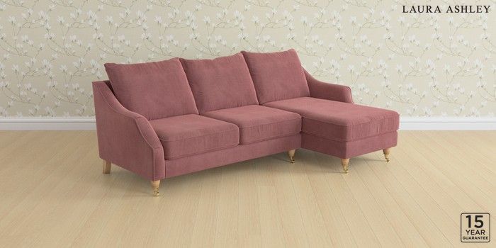 6.12.13 Buy Beverley by Laura Ashley Medium Sofa Chaise - Right Hand Peyton Plum Purple Low Brass Castor - Light Oak from the Laura Ashley online shop Click here to use our website with more accessibility support, for example screen readers