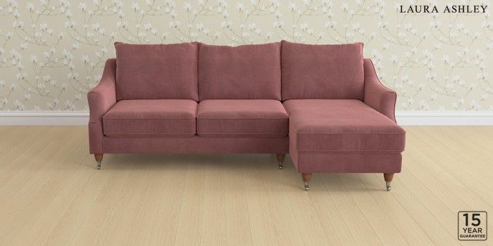 6.12.1 Buy Beverley by Laura Ashley Medium Sofa Chaise - Right Hand Peyton Plum Purple Low Chrome Castor - Teak from the Laura Ashley online shop Click here to use our website with more accessibility support, for example screen readers