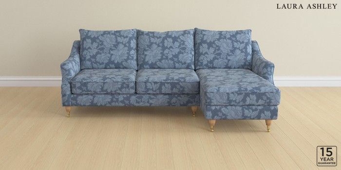 6.12.1 Buy Beverley by Laura Ashley Medium Sofa Chaise - Right Hand Tamara Dusky Seaspray Blue Low Brass Castor - Light Oak from the Laura Ashley online shop Click here to use our website with more accessibility support, for example screen readers