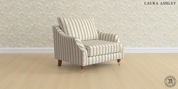 7.2.10 Buy Beverley by Laura Ashley Snuggle Kinsham Stripe Seaspray Blue Low Brass Castor - Teak from the Laura Ashley online shop Click here to use our website with more accessibility support, for example screen readers