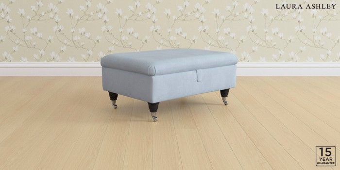 6.12.1 Buy Beverley by Laura Ashley Storage Footstool Ailsworth Newport Blue Low Chrome Castor - Black from the Laura Ashley online shop Click here to use our website with more accessibility support, for example screen readers