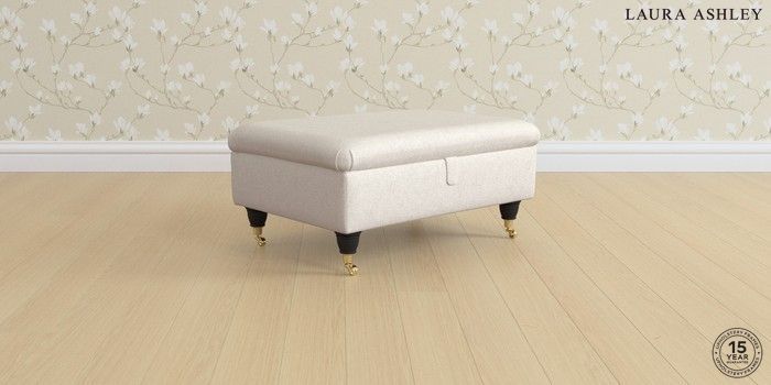 7.2.6 Buy Beverley by Laura Ashley Storage Footstool Anneliese Oyster Natural Low Brass Castor - Black from the Laura Ashley online shop Click here to use our website with more accessibility support, for example screen readers