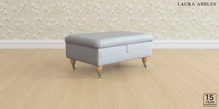 6.12.1 Buy Beverley by Laura Ashley Storage Footstool Anneliese Seaspray Blue Low Chrome Castor - Light Oak from the Laura Ashley online shop Click here to use our website with more accessibility support, for example screen readers