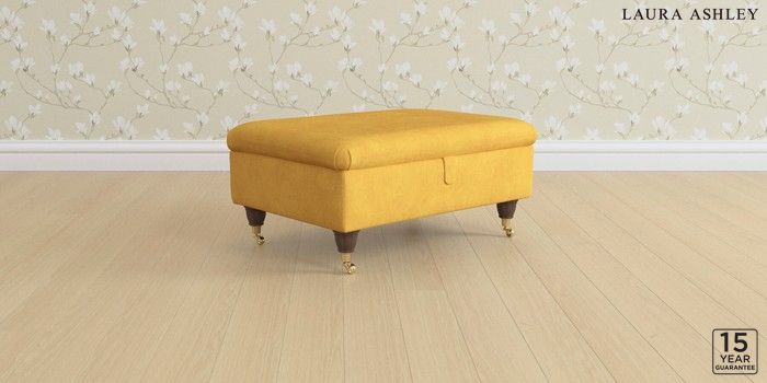 6.12.1 Buy Beverley by Laura Ashley Storage Footstool Bainton Ochre Yellow Low Brass Castor - Chestnut from the Laura Ashley online shop Click here to use our website with more accessibility support, for example screen readers