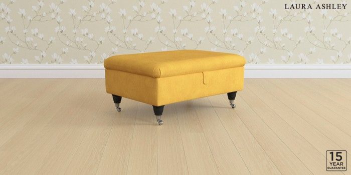 6.12.1 Buy Beverley by Laura Ashley Storage Footstool Bainton Ochre Yellow Low Chrome Castor - Black from the Laura Ashley online shop Click here to use our website with more accessibility support, for example screen readers