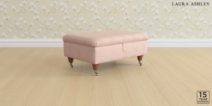 6.12.1 Buy Beverley by Laura Ashley Storage Footstool Edwin Chenille Blush Pink Low Chrome Castor - Teak from the Laura Ashley online shop Click here to use our website with more accessibility support, for example screen readers