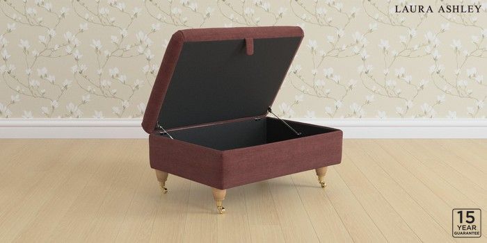 6.12.13 Buy Beverley by Laura Ashley Storage Footstool Edwin Chenille Burgundy Red Low Brass Castor - Light Oak from the Laura Ashley online shop Click here to use our website with more accessibility support, for example screen readers