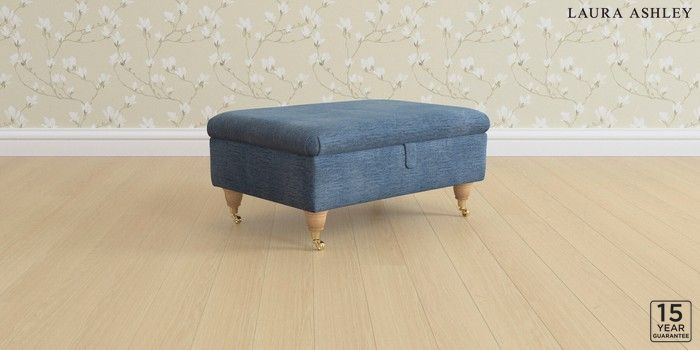 6.12.13 Buy Beverley by Laura Ashley Storage Footstool Edwin Chenille Seaspray Blue Low Brass Castor - Light Oak from the Laura Ashley online shop Click here to use our website with more accessibility support, for example screen readers