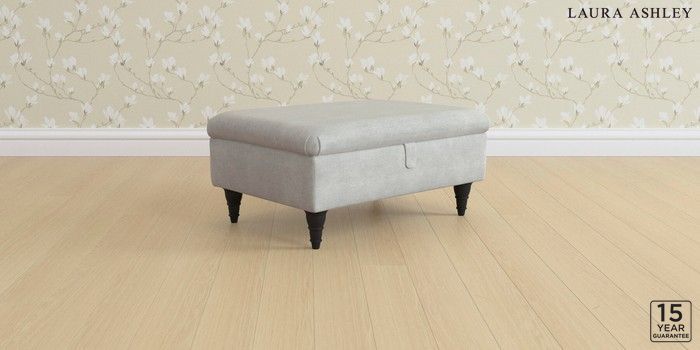 6.12.1 Buy Beverley by Laura Ashley Storage Footstool Edwin Chenille Silver Grey Low Turned - Black from the Laura Ashley online shop Click here to use our website with more accessibility support, for example screen readers